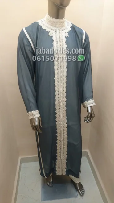 جلابة مغربية للرجال ثوب حبة صوف رقيقة كرونة خياطة باليد