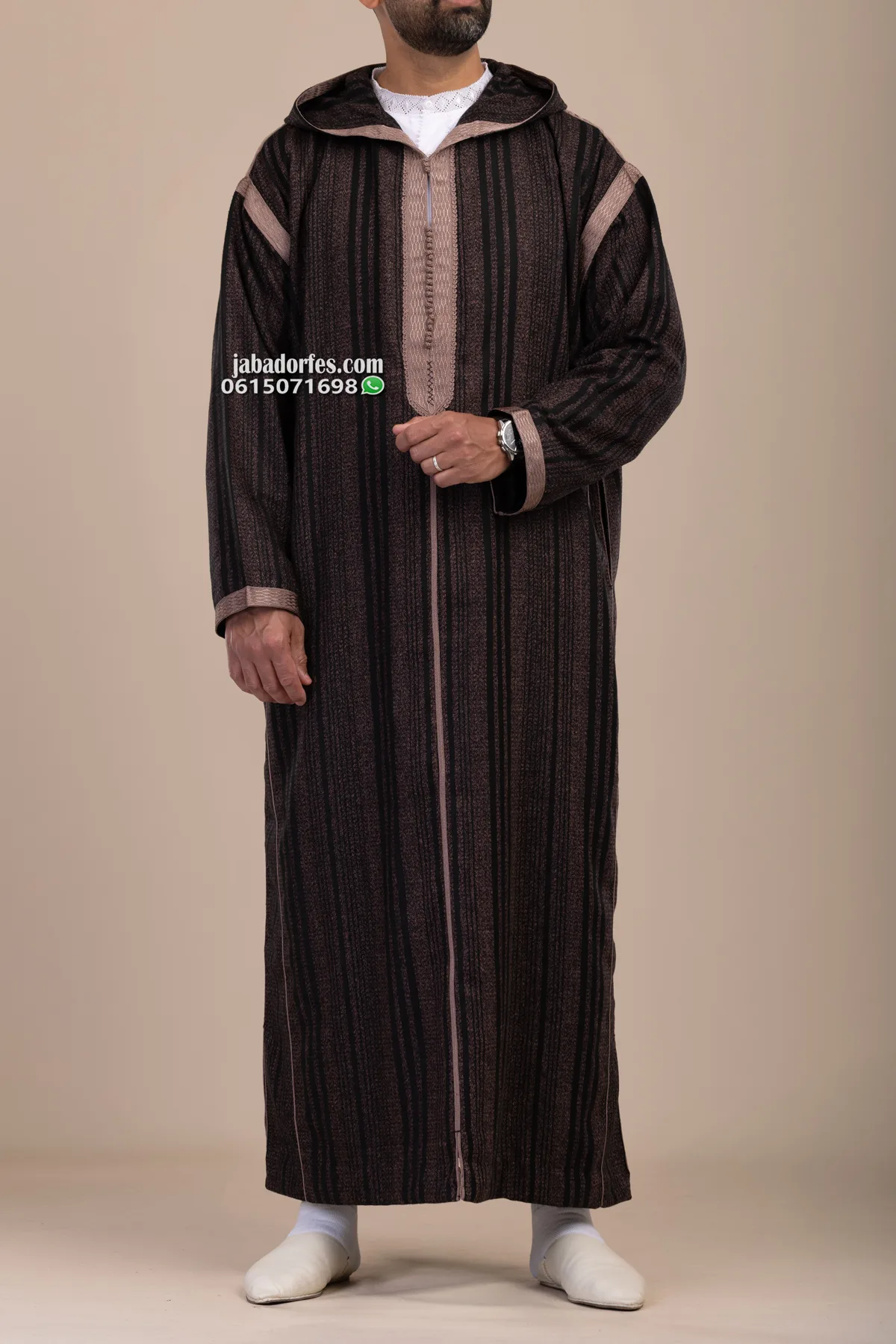 جلابة للرجال جيرلان بخطوط زهري شتوي خفيف قماش جلابة جيرلان شتوي ليس تقيل و الخياطة بالمكينة و زواق طرسان بالمكينة وزواق برشمان باليد