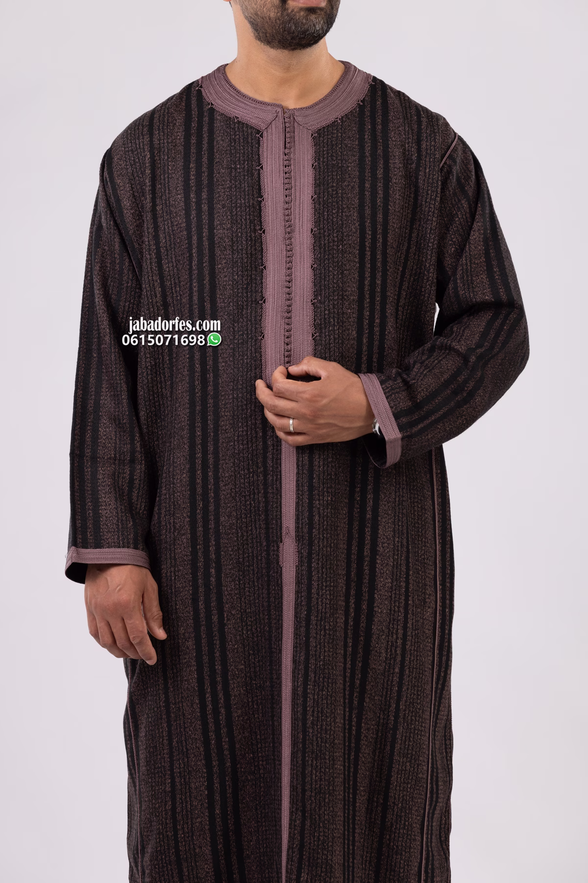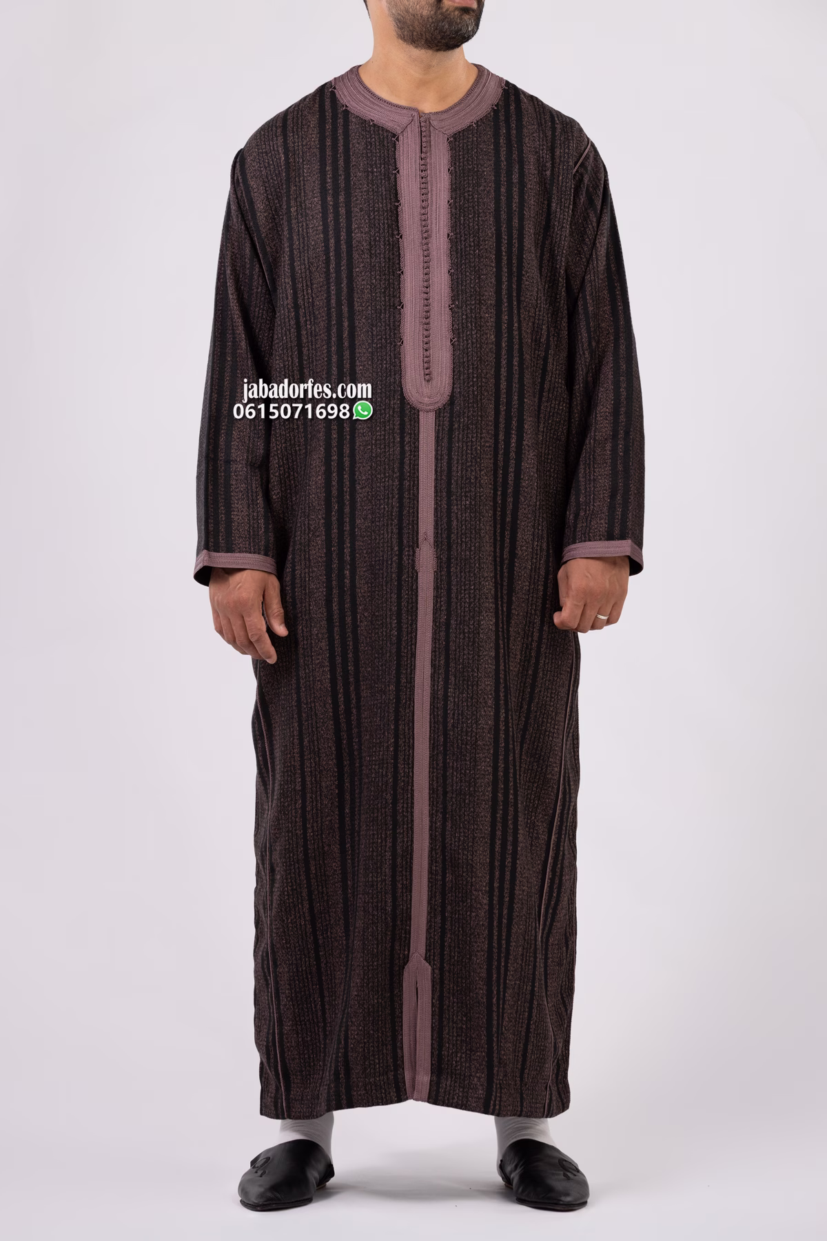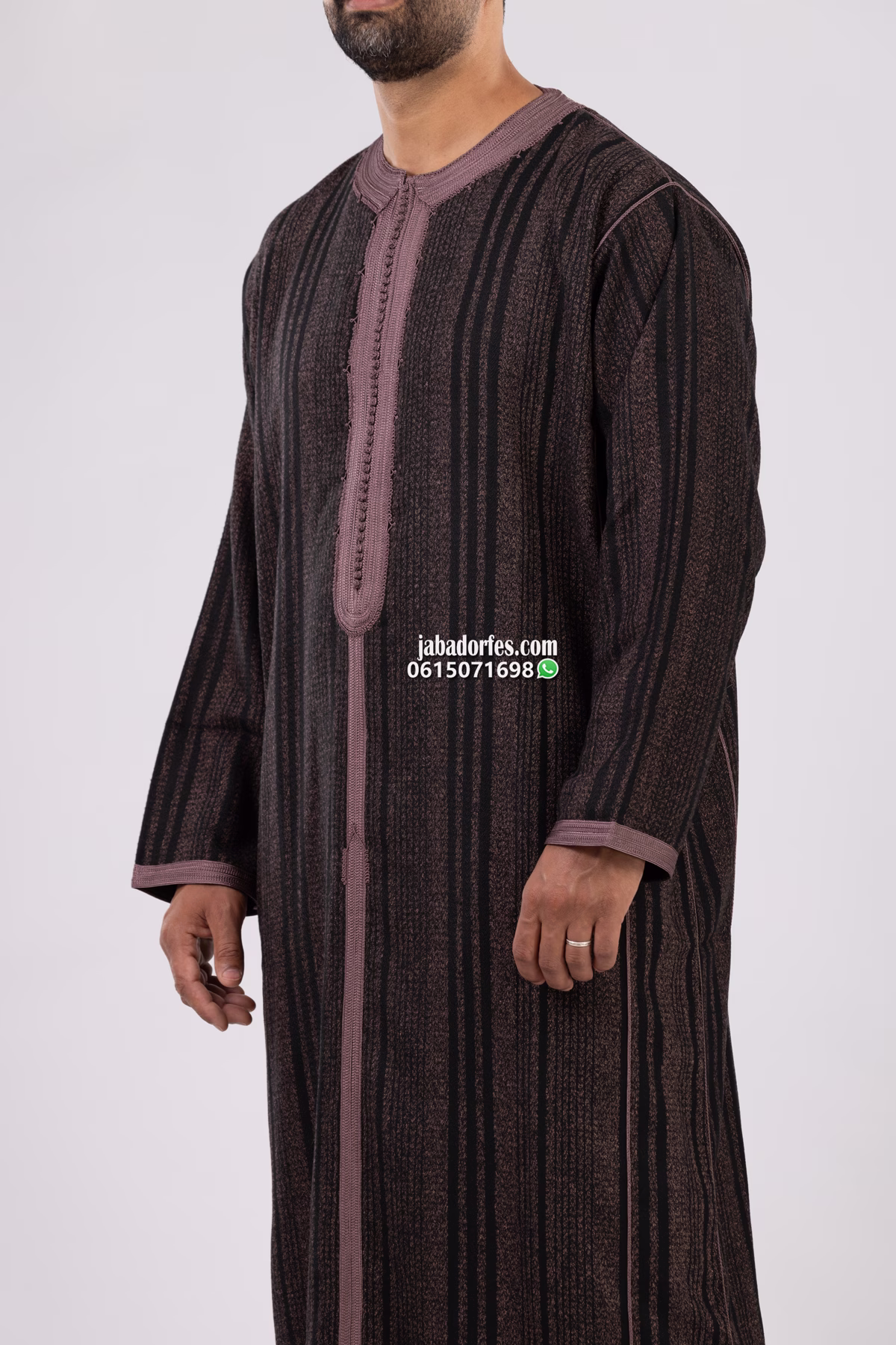قفطان للرجال جيرلان بلون كشمير لفصل الشتاء قماش جيرلان شتوي ليس تقيل و الخياطة بالمكينة و زواق طرسان باليد