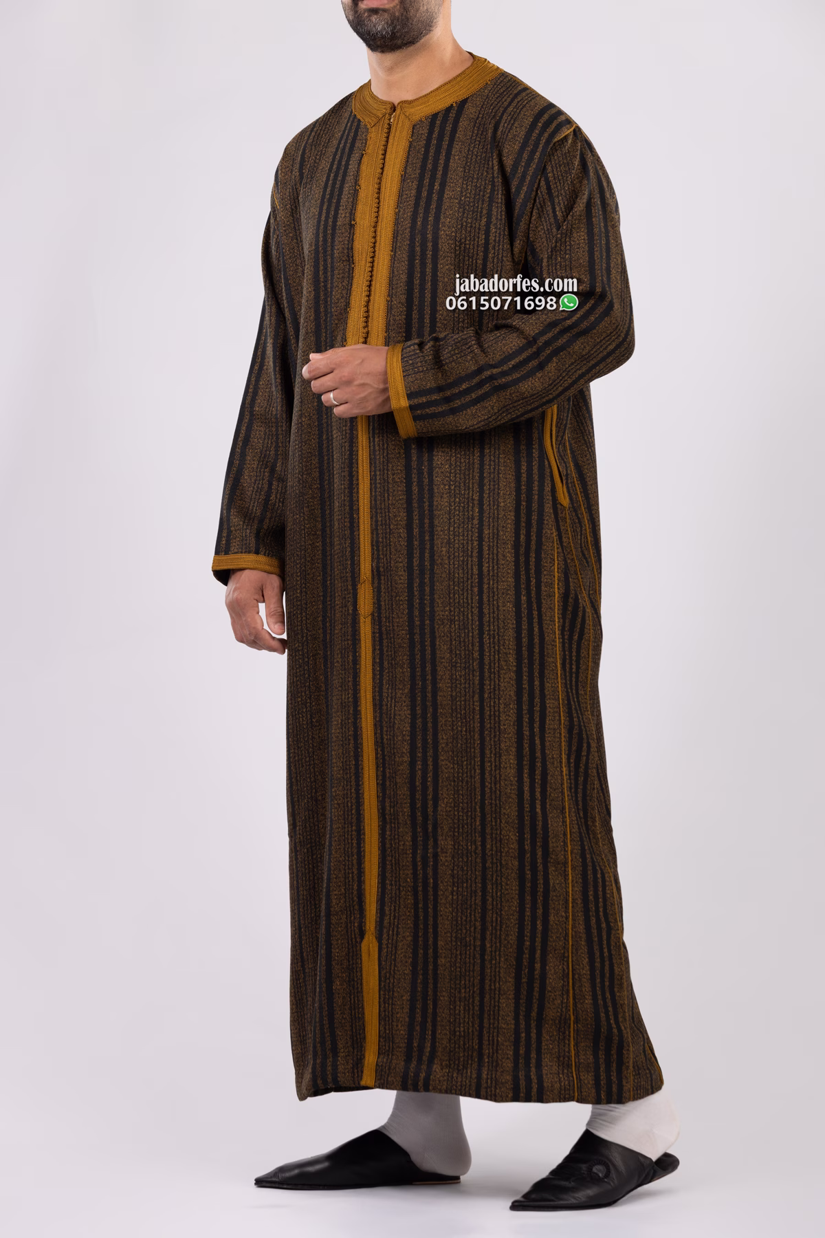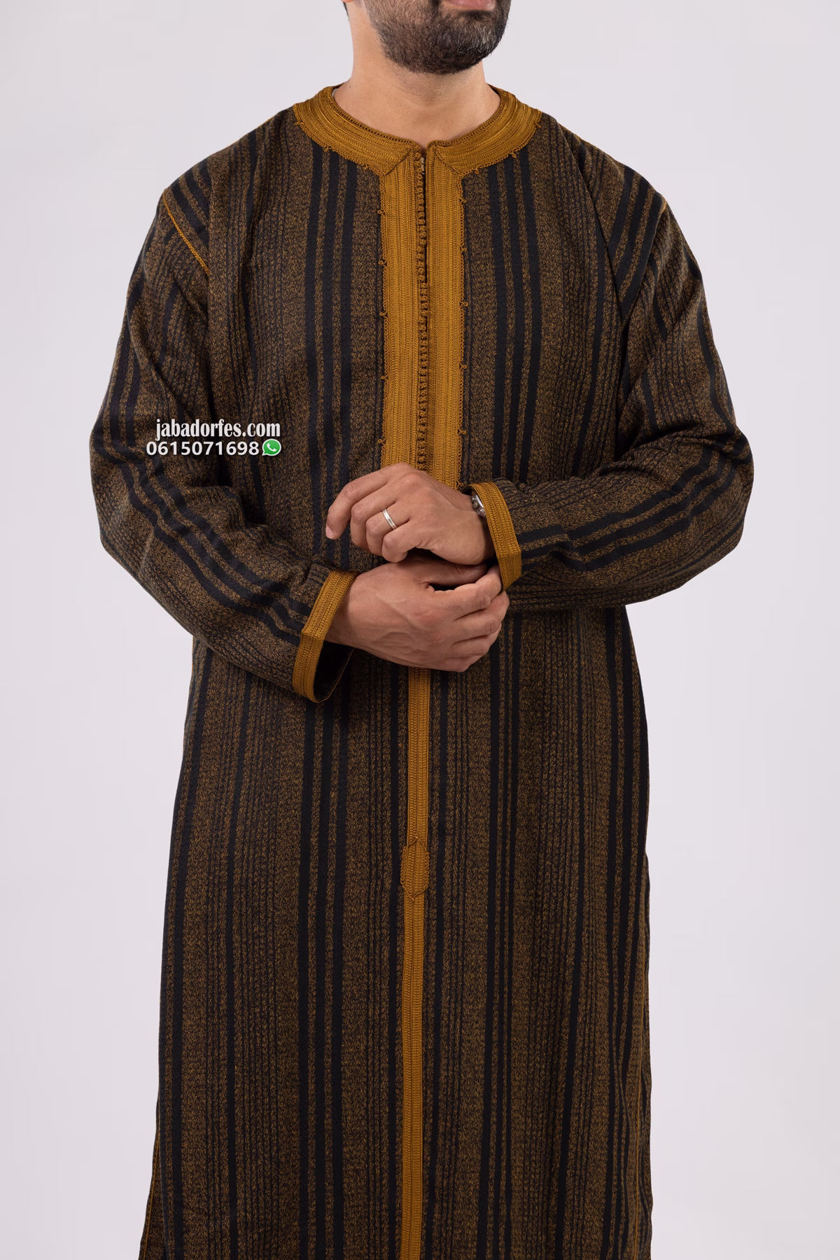 قفطان للرجال جيرلان بلون موطار لفصل الشتاء قماش جيرلان شتوي ليس تقيل و الخياطة بالمكينة و زواق طرسان باليد