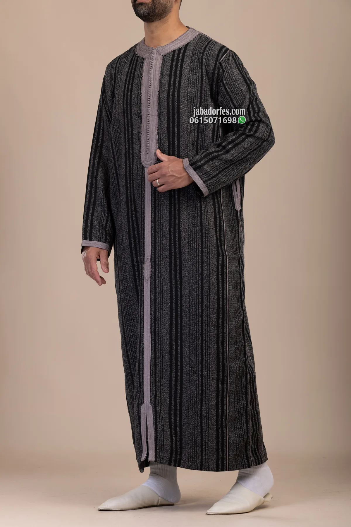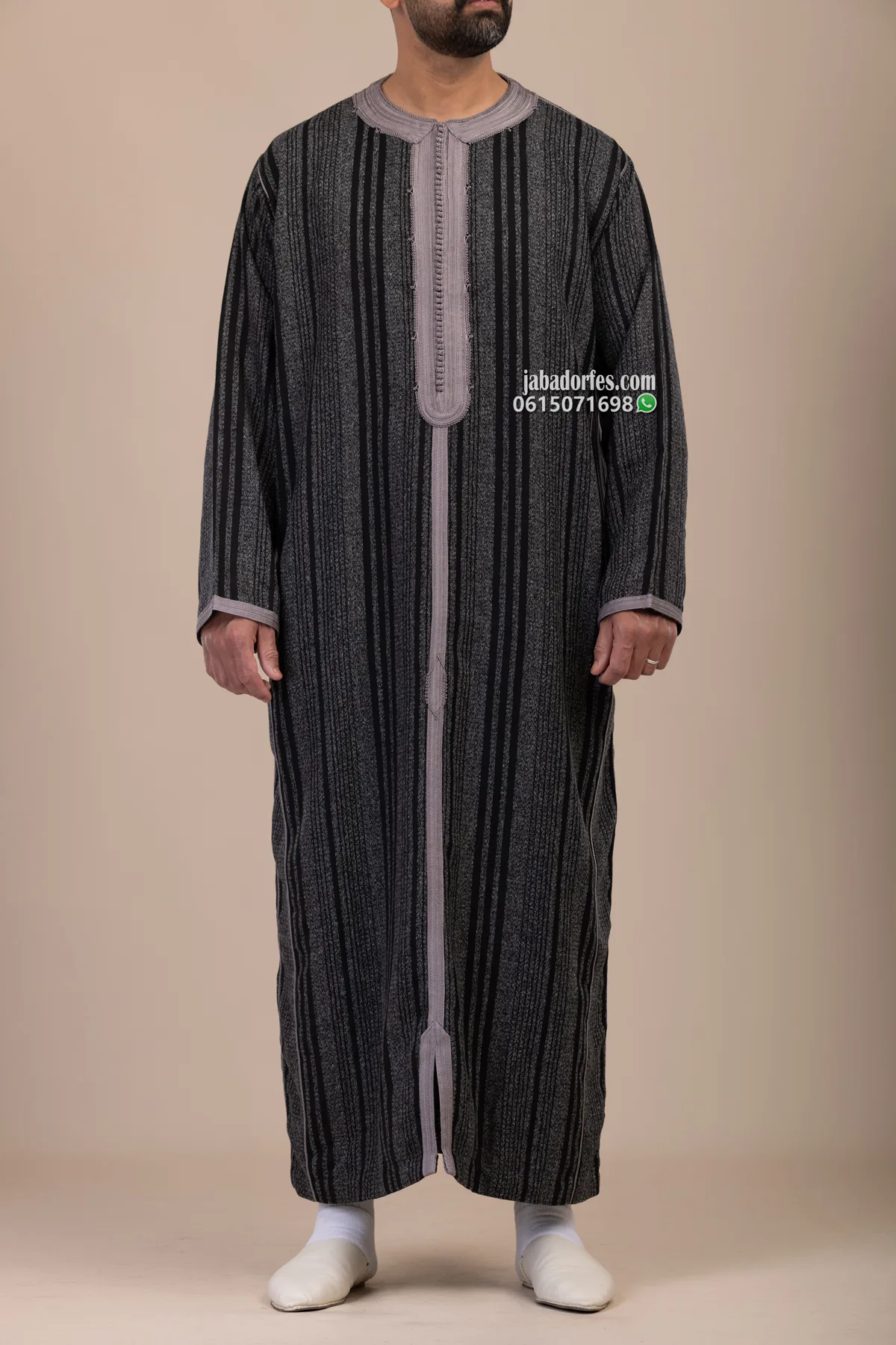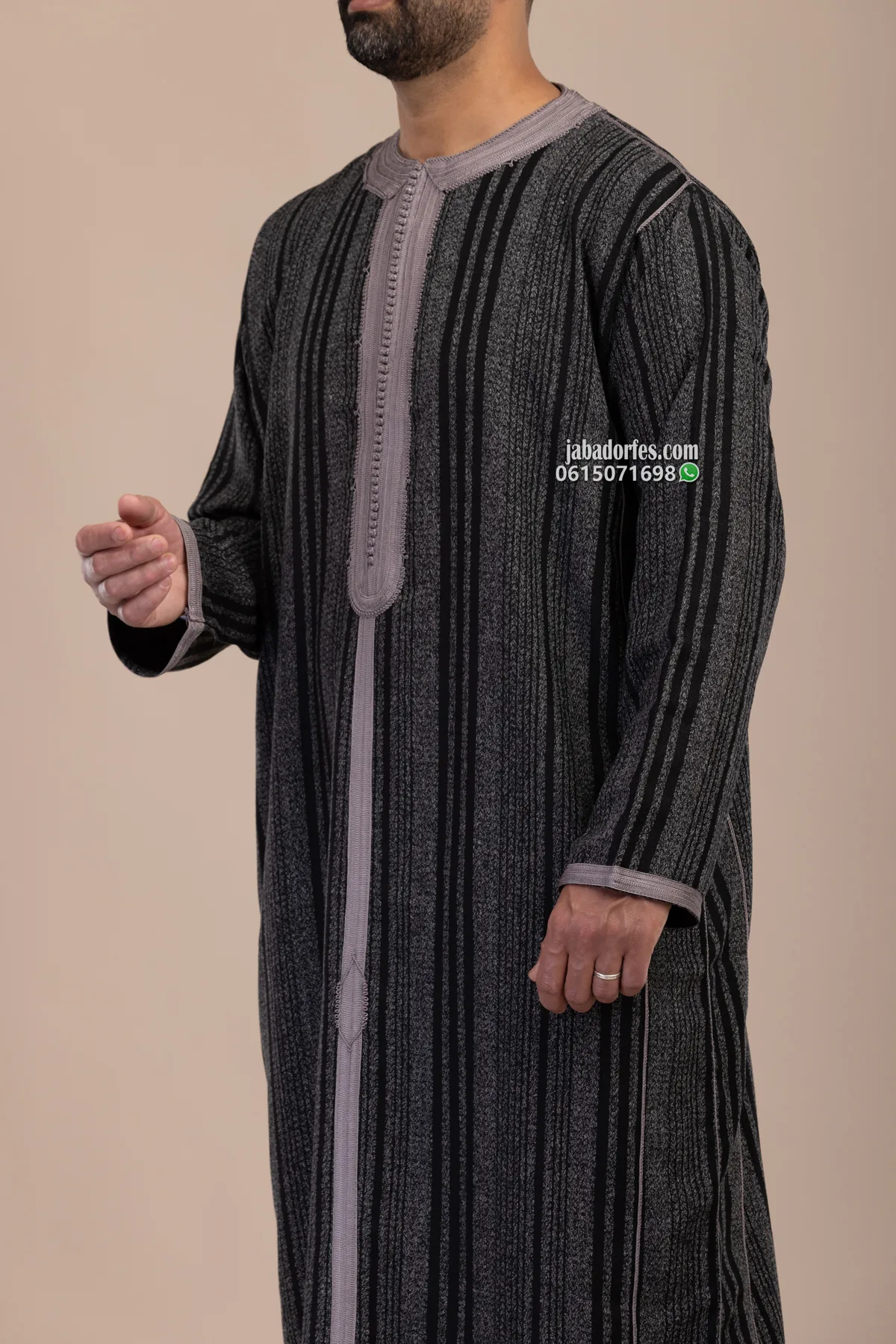 قفطان للرجال جيرلان رمادي شتوي خفيف قماش جيرلان شتوي ليس تقيل و الخياطة بالمكينة و زواق طرسان باليد